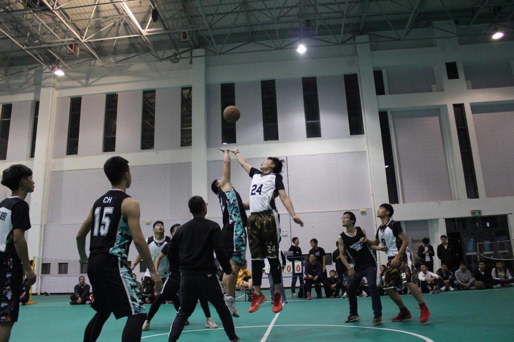 下半场进行中。院队调整了战术——留一人守于敌方禁区,队友抄球远距长传,篮下那人接球后及时勾手,进球得分。校队在吃亏一次后紧急回防,一招盖帽化解。局势渐渐白热化。然后两队比分差依旧在十分左右徘徊,偶有追近又被甩远。篮球战士们心怀分秒必争的精神拼尽全力,不惧受伤哪怕跌撞。