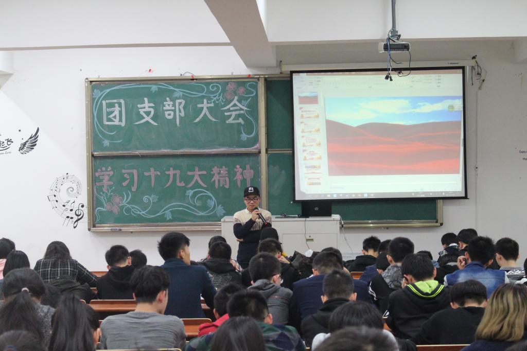 首先,团总支副书记向同学们介绍了党的十九大的概况,并系统阐述了十九大报告的主要内容。他表示,十九大报告是一份充分发扬民主,凝聚各方智慧,顺应全党全国各族人民共同心愿、符合中国特色社会主义发展要求、适应党和国家工作新形势新任务三维大会报告,大家需要下一些功夫进行学习。