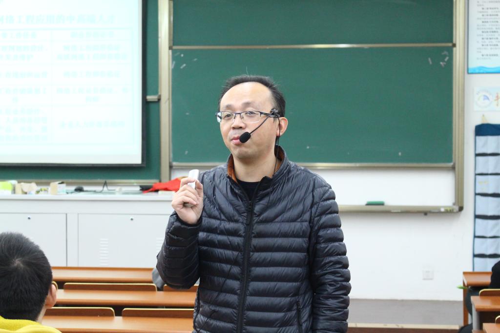 首先,齐鸣鸣老师介绍网络工程专业。从网络是什么有什么用谈起,叙述宏观下浙江打造网络经济强省的需要与人才现状的差距——目前中低人才占多,而像我院培养的中高级人才市场需求迫切,薪资待遇丰厚。实验室设备齐全,师资力量雄厚。并会在以后几年对接大企业,合作优良教育机构来充实本专业,保证同学们接受好的教育,具备设计、运营、实施、管理网络的能力及技能。