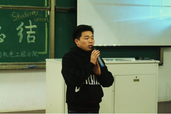 会上,首先团总支书记牛路老师对此次团学总结进行了开头致辞。紧随其后,开始了技术部总结然后分别是体育部、宣传部、文娱部、心理部、纪检部、外联部、学习部、助学部、组织部、生活部、自管办、团办、青协,他们分别对自己部门的成员以及这一学期的部门活动进行了介绍,其中掺插了007小游戏,我爱记歌词等游戏。