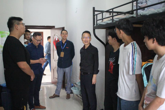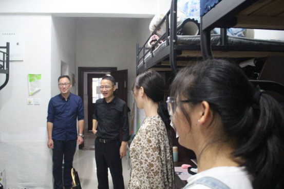 在走访新生宿舍过程中,校领导们与同学们真诚的交流,对他们的到来表示热烈欢迎,并鼓励同学们尽快适应新环境,建立良好的人际关系,团结同学,共建和谐校园氛围,同时勉励他们努力学习,学有所成。沈院长表示,学院一定竭力为大家营造良好舒适的生活居住环境,请各位家长和同学们放心。