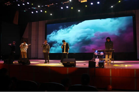 迎新晚会在空格乐队带来的开场乐中拉开了帷幕,观众们鼓掌欢呼,气氛迅速热烈起来。