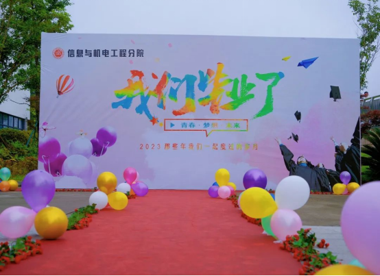首先主持人介绍了出席本届典礼的嘉宾有院长沈红卫教授,信息与机电工程分院院长潘慧老师,信息与机电工程分院副院长冯芳老师等学校、社会各界领导。首先由沈院长进行致辞,他送给毕业生三个“好”,为生活奋斗,为理想奔跑,谨记终身学习,希望毕业生们可以收获幸福与乐趣。