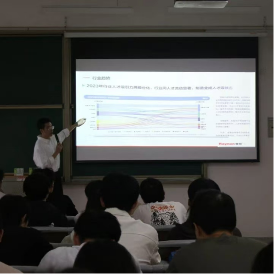 睿能科技成立于 2007 年,是国内技术领先的工业自动控制产品及解决方案供应商。公司一直专注于自动控制技术、电机控制技术、伺服驱动技术、变频控制技术、数字电源系统设计、运动控制技术、嵌入式系统软件开发技术、工业以太网技术、针织设计CAD软件开发技术等的研究。宣讲会上,招聘负责人详细介绍了公司情况、招聘岗位、人才培养体系和薪酬待遇等,在展现公司雄厚实力的同时,也热情欢迎广大25届毕业生的加入,为公司发展增添新鲜活力。同时,也鼓励同学们及时做好职业规划,借助公司职业发展体系实现人生价值。