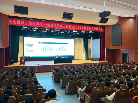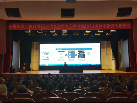 8月30日晚18:30,我分院为进一步提高师生对电信网络诈骗的防范意识,维护校园安全稳定,由保卫处联合当地公安机关协同开展了反诈专题讲座,特邀请东浦派出所傅畅警官来我院召开大学生防范电信诈骗专题讲座,分院24级新生近350人参加了此次讲座。