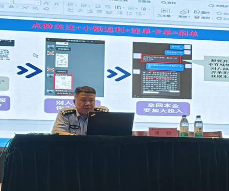 随后,傅畅警官针对当前校园内易发生的兼职刷单、网络交友、游戏充值等诈骗形式进行了讲解,让学生们更加直观地了解诈骗分子的作案手法和心理,掌握防范诈骗的技巧和方法。引导学生养成良好的网络使用习惯,不轻信陌生人,不随意透露个人信息;鼓励学生积极参与反诈宣传活动,发挥朋辈教育的作用,共同维护校园安全等。