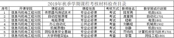 (4) 各分院抽查到的2019年秋季学期7门课程的考核材料课程见图2:2019年秋季学期课程考核材料检查目录。