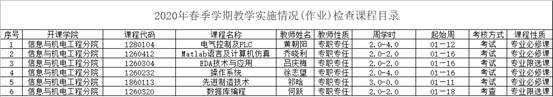 (3) 各教研室抽查到的本学期教学实施中6门课程目录见下图1:2020年春季学期教学实施情况(作业)检查课程目录。