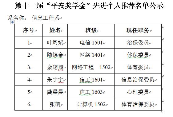 第十一届“平安奖学金”先进个人和第二届“平安班级”推荐名单公示
