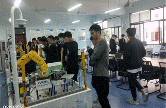 随后同学们参观了分院的工业机器人实训中心,对工业机器人表现出极大的热情,很多同学向老师咨询如何学好工业机器人专业,就业前景如何等问题,顾三鸿均进行了详尽的解答。