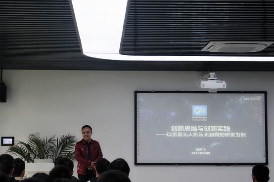 主讲人胡克飞凭借自己多年创业积累下来的经验,给同学们讲解、分析了极客桥无人机,详细介绍了无人机在生活中的广泛用途。在讲解无人机的同时,胡克飞也向同学们提出了两个要求:第一、希望同学们不要拘泥于现状,勇于尝试,敢于创新;第二、学以致用,服务于社会和人民。