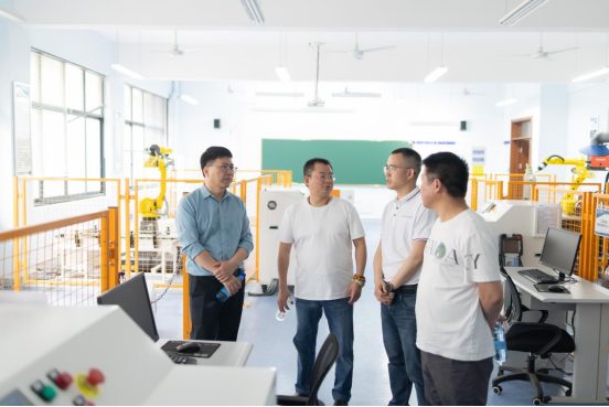 会后,专家们还实地参观了信息与机电工程分院的智能制造与工业机器人实验室,详细了解了学院在实验教学、实训平台建设以及智能制造教学设备配置等方面的现状与成果,对学院在推动专业发展和提升学生实践能力方面所做的努力给予了高度评价。