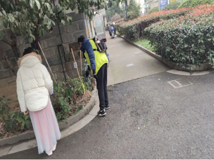 顶着十二月刺骨的寒风,大家接到了社区为他们安排的任务——清理社区垃圾。虽说树丛的阴影之下有着许多难清的杂物,但党员之家的义工们没有放过每一个角落,三下五除二,街道和草丛焕然一新。